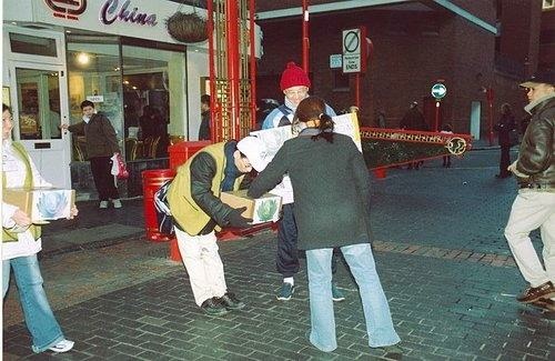 既然是街頭募款,那當然是要在外面站一天的,如果今天是風和日麗的日子,那麼站在街上看看人潮順便作作善事倒也是挺愜意的一個週末,可是沒想到今天竟然是個寒風刺骨的天氣,所以一大早我還躺在被窩裡的時候就開始後悔了,當我手上捧著捐款箱向來往路人募款的時候,我確定我是真的很後悔,我這輩子從沒站在街頭向人要過錢,我,堂堂一個受人尊敬的船長,今天怎麼會站在街頭頂著刺骨寒風,向來往路人點頭哈腰要小錢呢?心中雖然一直安慰自己這是在做善事,但是我始終感覺不自在,拉不下這張臉,請人捐款的呼聲小得大概只有自己聽得見,我就這樣呆站在街頭,希望這一天趕快結束,像我這樣的表現,當然我的募款箱內捐款也少得可憐(還包括我自己先投進去的捐款),一位師兄(年紀很大的伯伯,倫敦華人僑界前輩),遞給我一杯熱茶,接過我手中的捐款箱,讓我先休息一會兒,他安慰我說:第一次出來募款吧?不要怕難為情,心中有愛心,自然心安理得。然後我看著他,一位比我年長、社會地位崇高的長者,在街頭不斷謙卑的向路人鞠躬並且大聲的勸人捐款,經過同事的介紹,我才驚訝的發現,許多同樣站在街頭頂著寒風向路人勸募的師兄、師姐們都是大有來頭的人物,這些人,平日都是高高在上的老闆、董事長或總經理,而今天全都站在街頭努力的呼喊著,請人們發揮愛心救濟海嘯的災民。