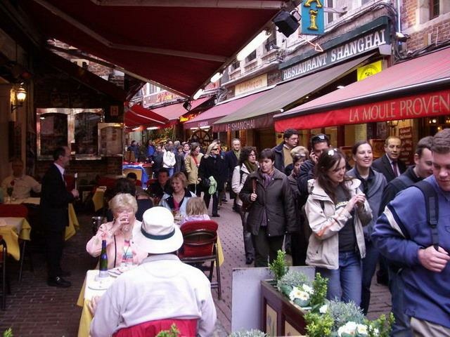 好了,到目前為止我還看不出來布魯塞爾這個城市對我來說有任何的「親切感」,也許是歷經百年的變遷,景物已經全非了吧?跟旅館櫃台要了一份市區地圖,我就開始了我的「尋根之旅」,布魯塞爾的地鐵系統遠比不上倫敦或巴黎複雜,但我卻坐得迷迷糊糊的,經常坐錯車或不知要如何換車,出了地鐵站,在地圖上明明不遠的地方,我卻走了老半天怎麼也走不到,而且越走越偏僻,迷路迷得一榻糊塗,布魯塞爾有一條著名的「美食街」,原本計畫今天中午要在那兒品嚐美味的「淡菜海鮮鍋」,但是到了下午兩點,我還像個白癡一樣,拿著地圖在市區裡兜圈子,不知道是哪個混蛋說這裡是我前世的故鄉,我怎麼一點印象也沒有,我甚至懷疑能不能撐到找到飯吃,不至於餓死在「前世的故鄉」。
