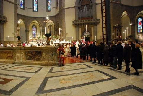 教堂的唱詩班唱起了義大利國寶級聖樂家Palestrina的複聲彌撒曲,我只會跟著唱最後一句:「啊~~~~~們」,然後跟著比劃十字架,舉行彌撒的教士們可說是「唱作俱佳」,大部分的經文跟祝禱詞都是用詠唱的方式,雖然我根本聽不懂義大利文唱什麼?但是我仍然覺得唱得很好聽、也同樣很感動,比主教講了20分鐘的佈道演說要生動多了,可見唱聖歌或是佛教中的誦經是很重要的宗教儀式,音樂無國界,即使教義聽不懂,光聽莊嚴的旋律就能讓你感動得淚流滿面,感覺全身充滿聖靈。