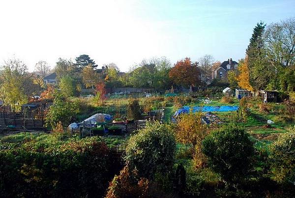 冬天的菜園顯得有些蕭瑟,業餘的農夫們也很少在這個季節來顧他們的菜園,園內所有的植物也都處於休眠的狀態,所以樹葉也都掉光了,比起夏季枝葉繁茂的盛況,園內顯得很空曠,雖然倫敦冬季很少下雪,但整個冬季總會有一兩天下雪的時候,當清晨起床向窗外望去,一片雪白的銀色世界覆蓋陷入冬眠的菜園,偶而飛過幾隻黑色的烏鴉發出「呱!呱!」的叫聲,使菜園顯得更加孤寂。
