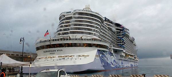 今天又幹了一件蠢事,照片的重點不是看遊輪,而是看天空 ,美麗的地中海藍被烏雲取代了,早上出門就是個陰雨的天氣,我沒帶傘,但也無所謂,因為公車站牌就在馬路對面,下車後公司也在對面,挺一下就過去了。