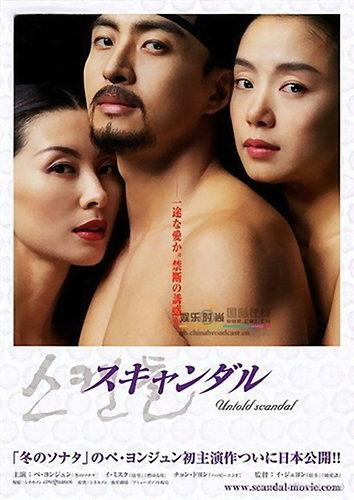 陰謀,拋棄,亂倫,殺戮……一道道傷痕,讓生活在《醜聞》中的人們生活的遠沒有他們身上的古裝那樣長袖飄飄,瀟灑自在。不過,幸運的是,我們從這部電影中還是更多地看到了愛情,如素玉和仁浩那般清潔如水的愛情,如趙元和鄭氏那般弄假成真的愛情。即使是被趙元稱之為充滿“佔有欲和毀滅欲”的趙氏夫人,也用那包藏在心口的乾花,讓我們看到了她埋藏心靈深處的愛情。