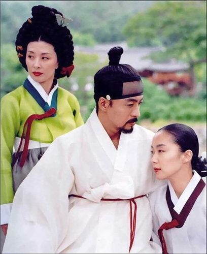 飾演鄭氏的全度妍的表現也比我預期的好。本來這一“苦情”類的角色就很悶,但全度妍將角色細微的心理變化不著痕跡地表現出來了。比較有難度的是當趙元來告別那一段,她其實早已心動,只不過沒有契機打開心房而已,這時心上人突然要永遠離開了,她又不好明留,只好吃個啞巴虧。全度妍在那幾個鏡頭中幾乎沒有特別動作,甚至臉部肌肉都沒怎麼動,但觀眾就是能看出她的神情已經由強裝鎮定變成了控制不住的痛心。憑那一刻,我們就知道這個號稱九載烈女的女人已經無藥可救了。像鄭氏這樣“悶騷”的女人,還真只能透過眼神來傳遞內心的渴望,當她再次見到趙元時那梨花帶雨的神情,傻子都知道什麼都不用說了,直接走完萬裡長征最後一步得了。其實,我覺得演素玉的那個演員也挺好,儘管那種天真純潔的樣子並不是我喜愛的類型,但憑直覺,初戀的16歲女孩還真是那種傻樣子。