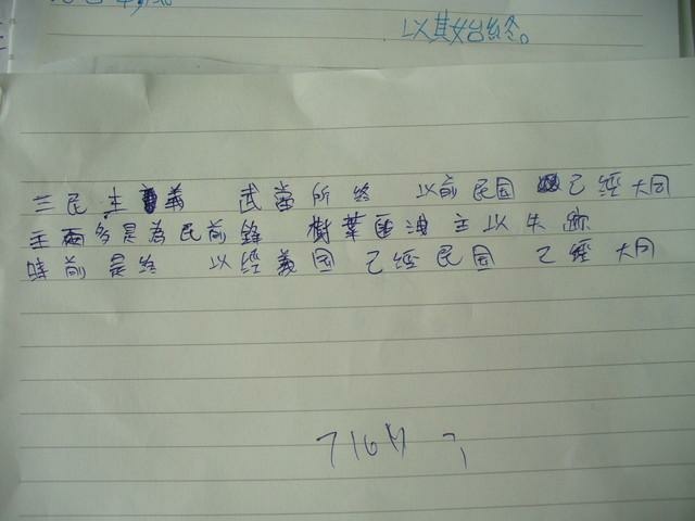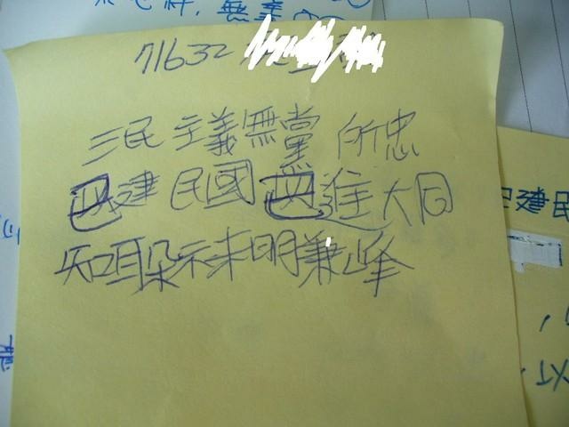 還有人寫「三民主義,五黨所忠」,問他哪五黨,還理直氣壯的算給我聽:國民黨、民進黨、新黨...完全被打敗了!原來國父那麼未卜先知,還知道會有這麼多黨出現啊!