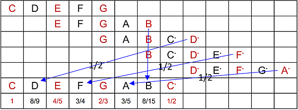 也是屬於純律的一部分,是用每一個音的純五度(弦長比為2:3),推算出下一個音階。